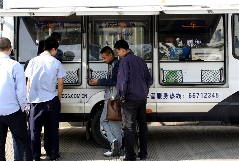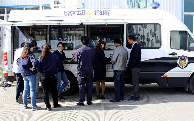 10月15日上午9点30分,服务车开进济南天辰铝机股份有限公司,现场为企业员工办理驾驶证、行驶证和机动车年检业务。据统计,“流动车管所”共为企业150余名员工办理了驾驶证年检业务,发放宣传材料、解答咨询100余次。