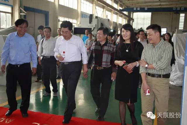 天辰集团侯秀峰董事长陪同山东省建机行业张永光理事长参观天辰车间