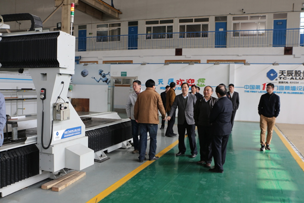 2017年3月18日,山东省机械工业科学技术协会组织相关专家莅临天辰集团对济南天辰铝机股份有限公司研发制造的三台新设备,即“LGZK/MJ轻钢龙骨组框铆接柔性生产线”、“LMBX铝模板锯冲铣自动生产线”和“工业铝型材五轴联动龙门加工中心”进行了新产品鉴定。济南市经信委装备产业处岳双荣处长受邀参加了此次鉴定会。