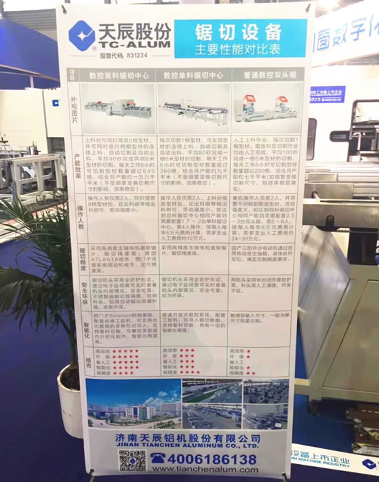 2017年上海国际门窗幕墙博览会盛大开幕,天辰股份携数控双料锯切中心、数控四头组角生产线、高速数控钻铣中心和环保型任意角双头锯等高端智能设备参加展会,展位号E5.106。届时,天辰股份将首次展出并演示操作“新一代智控任意角双头切割锯”,欢迎行业内新老客户莅临参观!