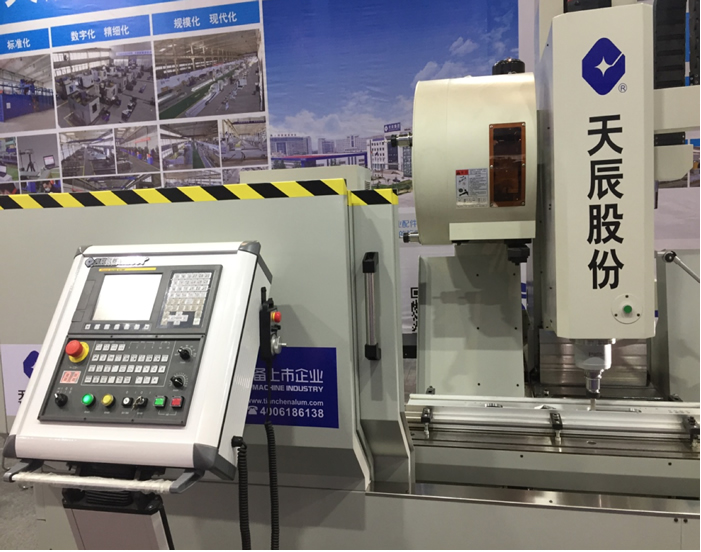 该设备具有运行速度高、性能稳定可靠、工作精度高、外形美观、易操作等特点。全部动作均由NC控制、伺服电机、气动系统来实现。运动副采用直线运动轴承,运动阻力小,精度高。主轴采用伺服电机+主轴的结构。伺服电机功率大,扭矩大;主轴刚性好,适用在各种铝型材平面上加工安装孔、流水槽、锁孔及攻丝等加工工序,可加工铝合金、轻质合金及Upvc等材料,还适用于工业铝型材、部分钢材的加工。