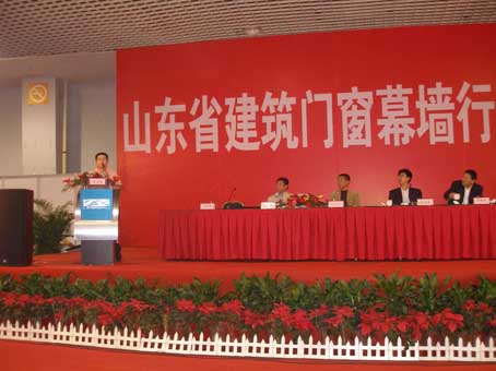 ??? 展会期间,主办单位对所有参展企业的展品进行了评奖活动,经评奖委员会一致推荐,我集团铝机公司荣获本次门窗幕墙展览会的最高荣誉-----金奖。铝机公司周倩总经理受邀在展会期间召开的山东省建筑门窗幕墙行业工作会议上作了精彩的发言。